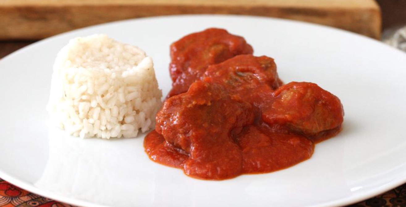 CARRILLADAS DE CERDO CON TOMATE Y GUARNICION DE ARROZ