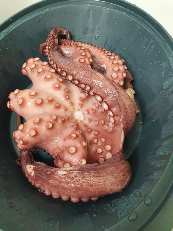 Para un pulpo de poco peso, también podemos hacerlo al revés, en el cestillo el pulpo y en el Varoma las patatas.