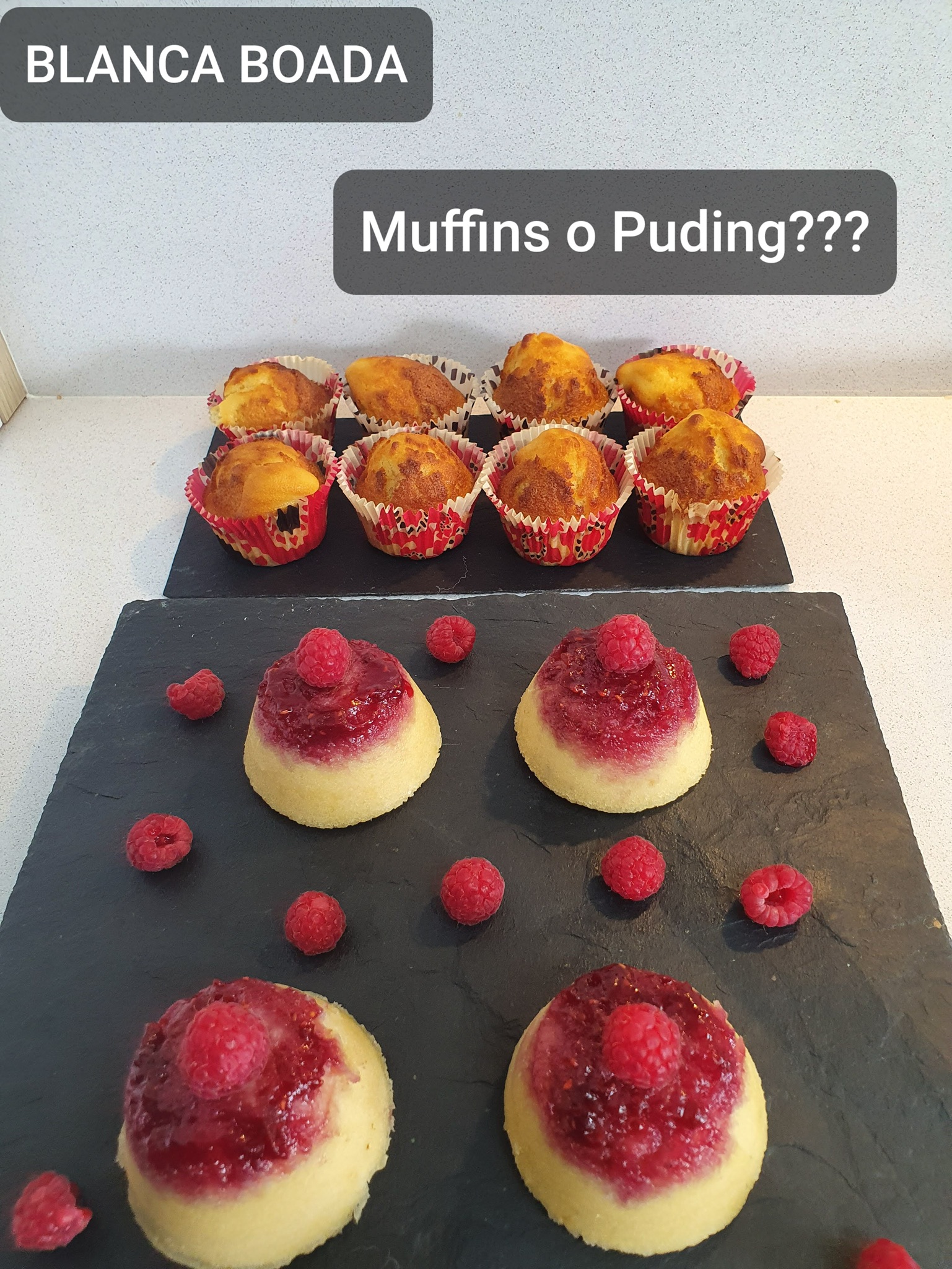 - 4 moldes con mermelada de frambuesa para los pudins.
