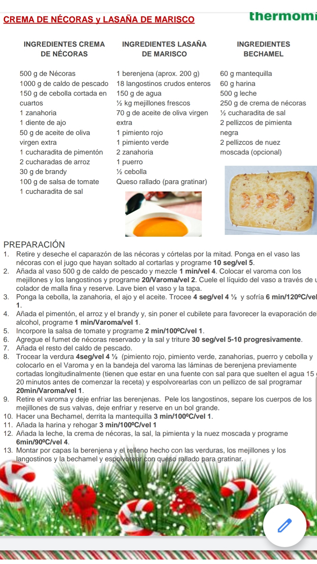 MI CREMA DE NECORAS Y LASAÑA DE MARISCO Y VERDURAS