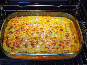 - HOrnear 20 a 25m a 190º con aire y calor arriba, para que se haga la pasta y gratine el queso, vigilar no se tueste demasiado el queso.
