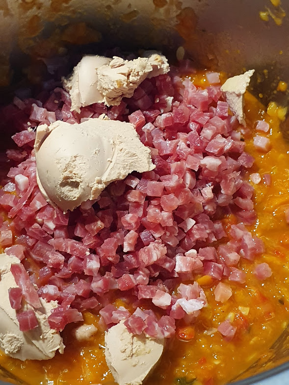 - Añadir el paté y jamón y 2m/100º/v.2 giro inverso.