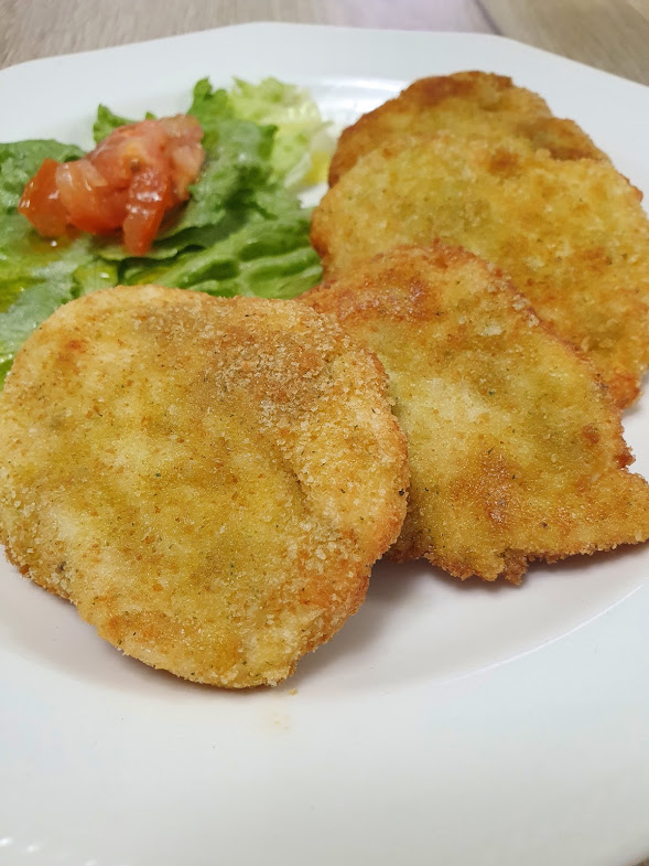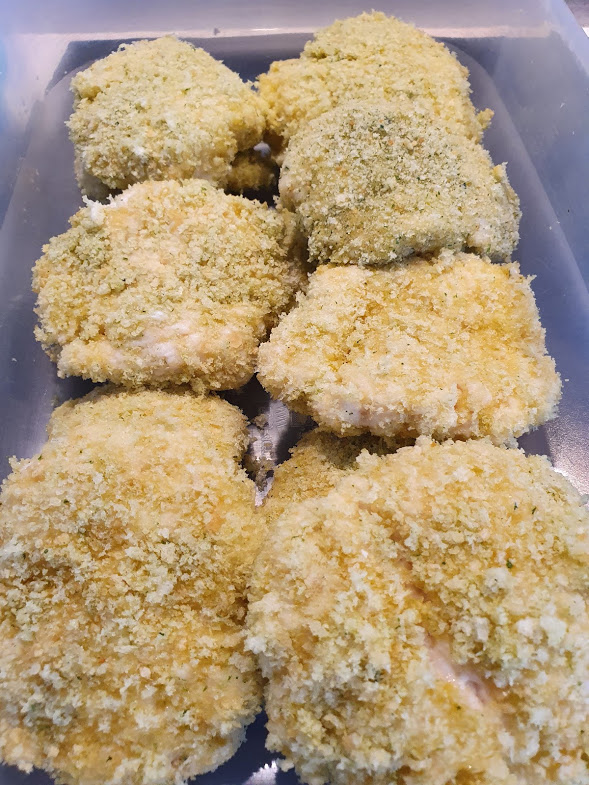- Sacar la pasta del vaso, hacer bolitas y aplastar con la mano, se manejan muy bien. Empanar pasandolos por huevo y ese pan rallado casero. Ir colocando en una fuente extendidos para congelar y tapar. Una vez ya se han endurecido podemos sacarlos a una bolsa para que no se rompan y no ocupen tanto espacio en congelador.
