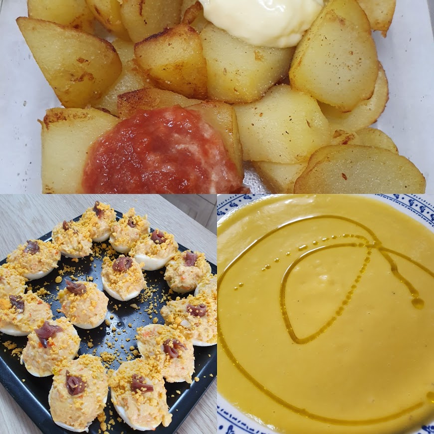 CREMA DE VERDURAS, HUEVOS RELLENOS CON MI TOQUE Y PATATAS BRAVAS