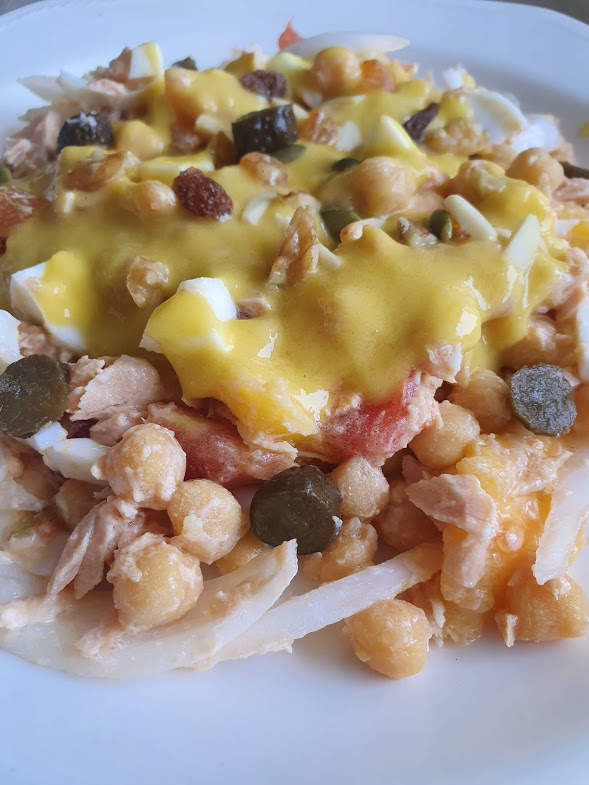 - ENSALADA DE GARBANZOS CON ATÚN, VINAGRETA DE MANGO Y FRUTOS SECOS