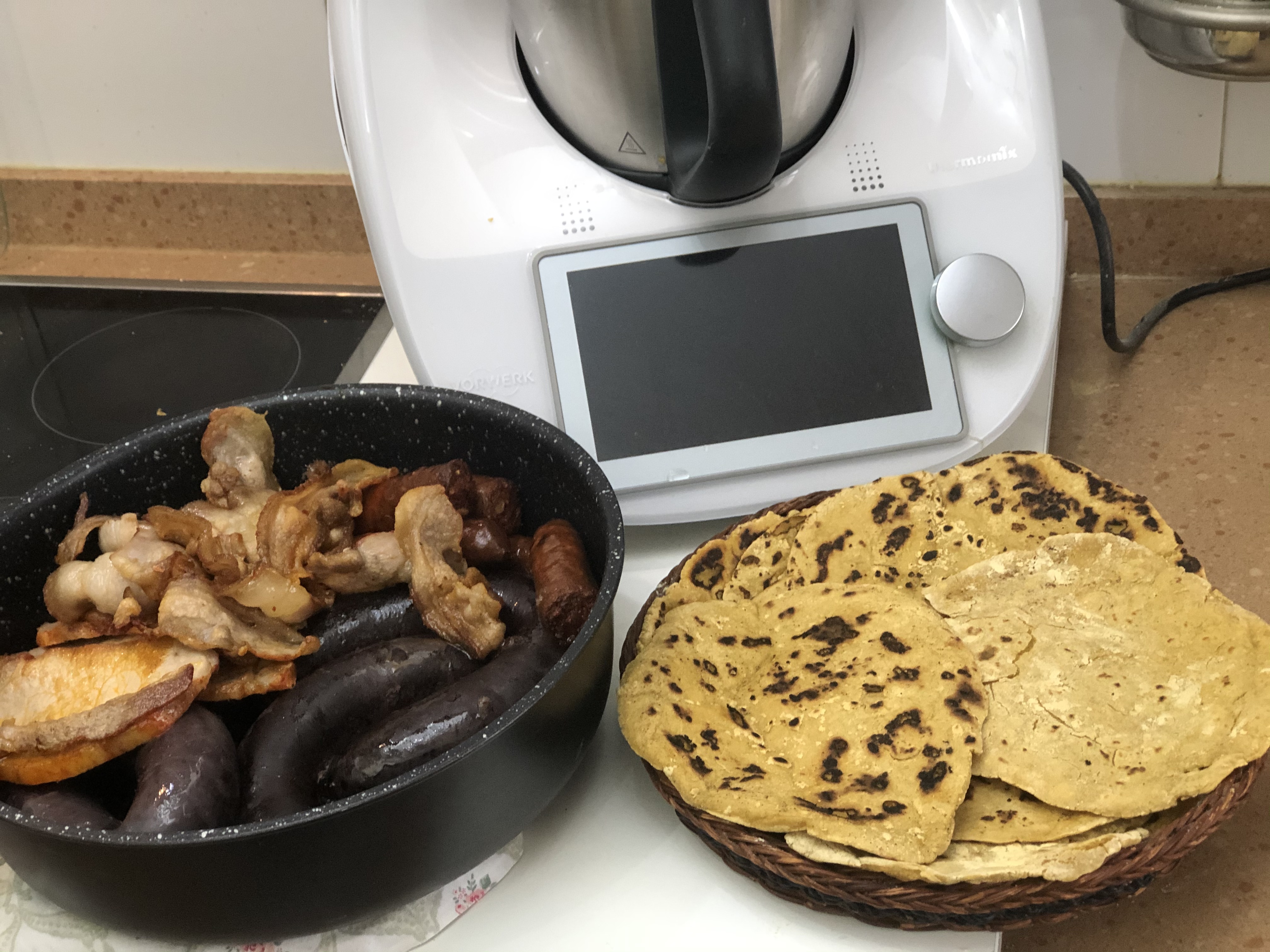 El talo es ideal para comer con chorizo, panceta, morcilla etc..... es típico hacerlo en las ferias donde también lo sirven con chocolate