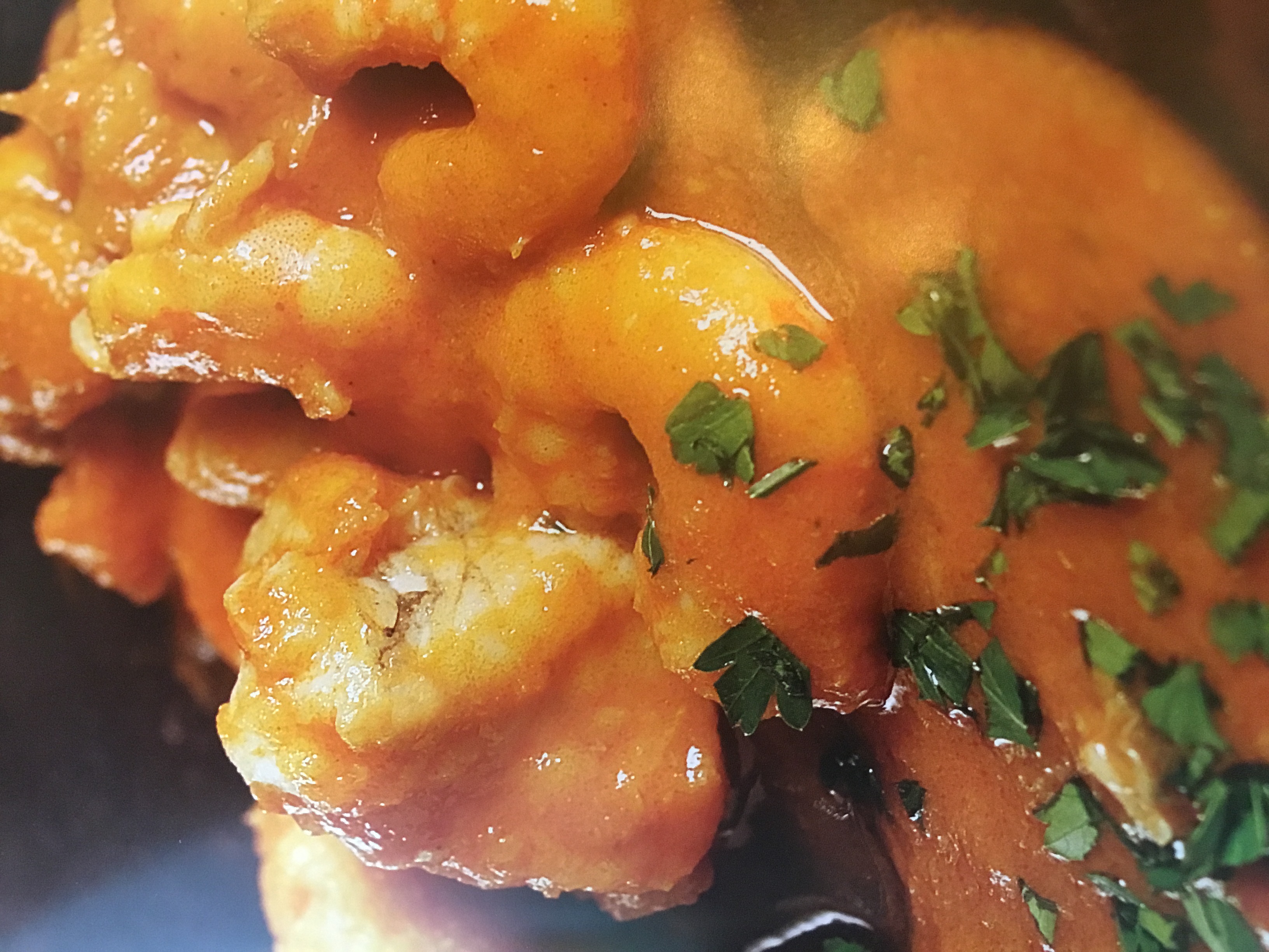 - Pasamos el rape ligeramente por harina y lo introducimos en el vaso y programamos de nuevo 10 m/ 100 grados/ giro inverso/ vel cuchara.Cuando falten 3 minutos ,incorporamos los cuerpos de las gambas y el perejil y dejamos reposar unos minutos