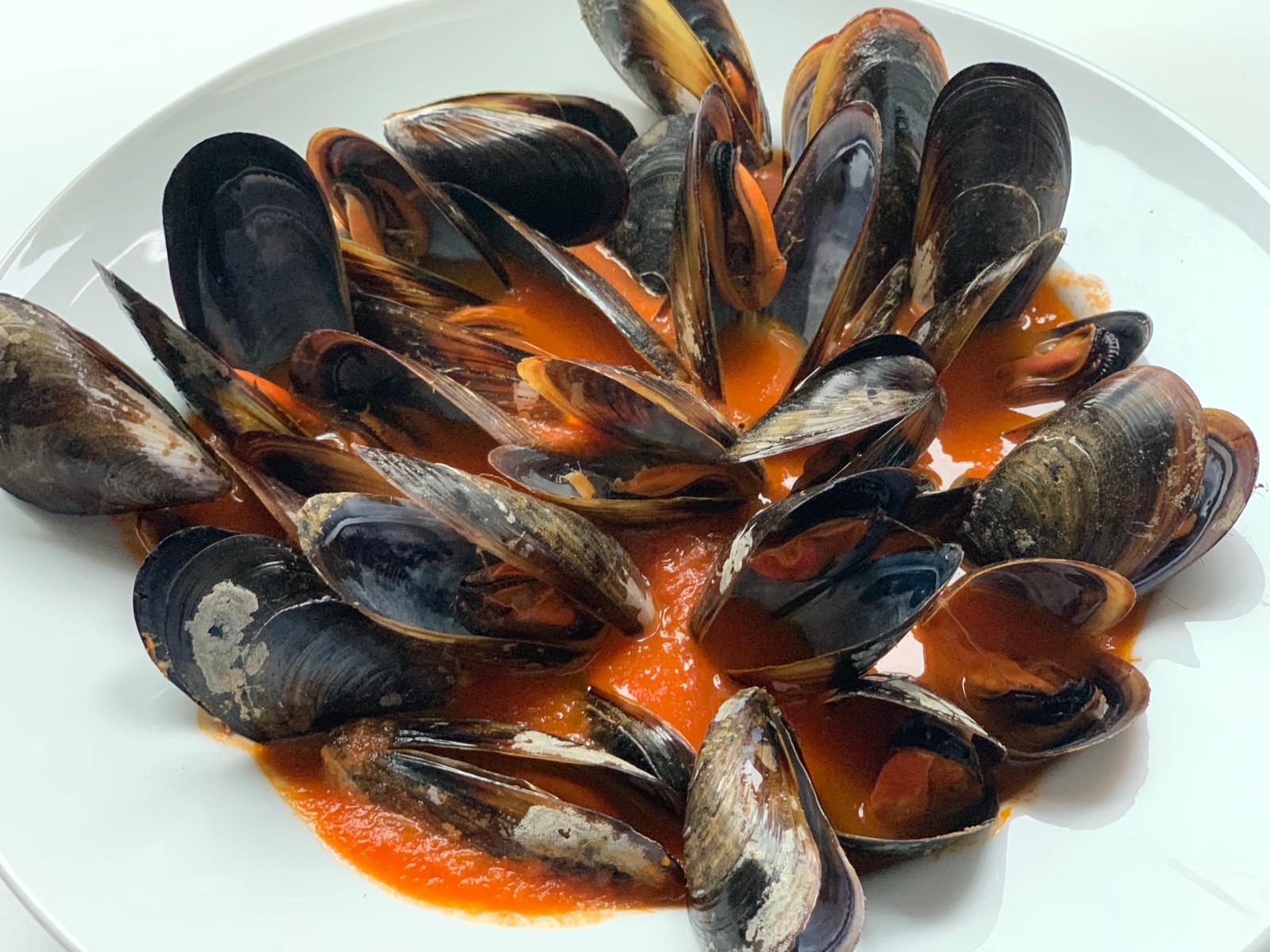 Mejillones al vapor con tomate.