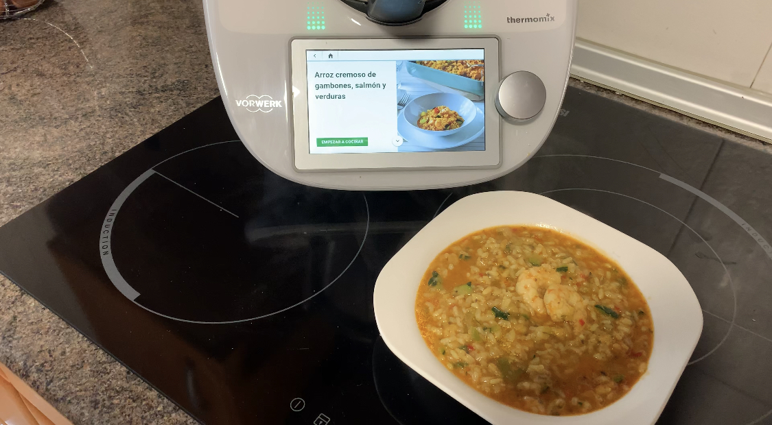 Arroz cremoso con gambas.(basado en la receta de arroz cremos con langostinos salmón y verdura).