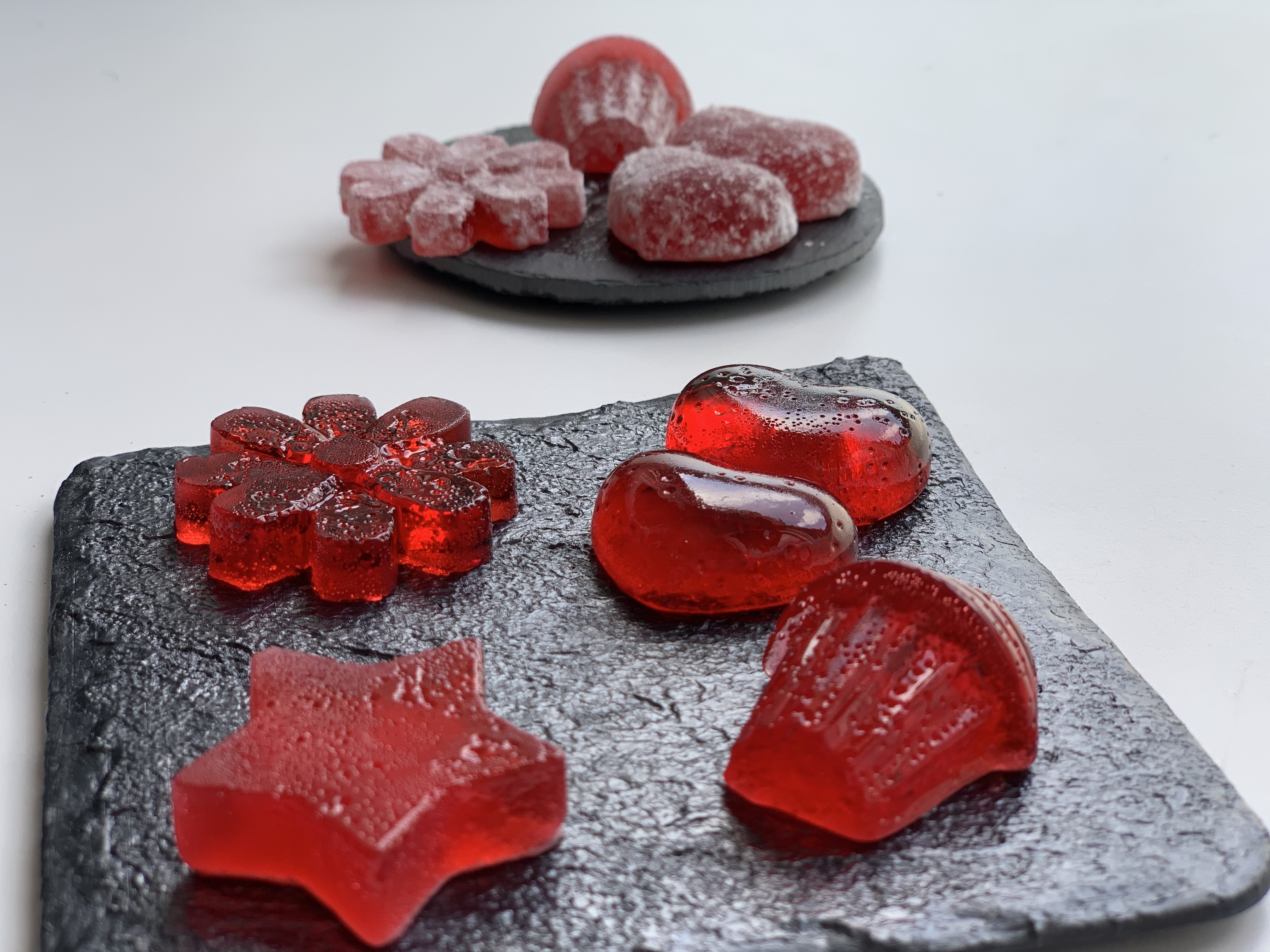 - Con un cuchillo bien afilado, corte las gominolas y rebócelas en los 200 g de azúcar. Sirva o conserve en un recipiente hermético.