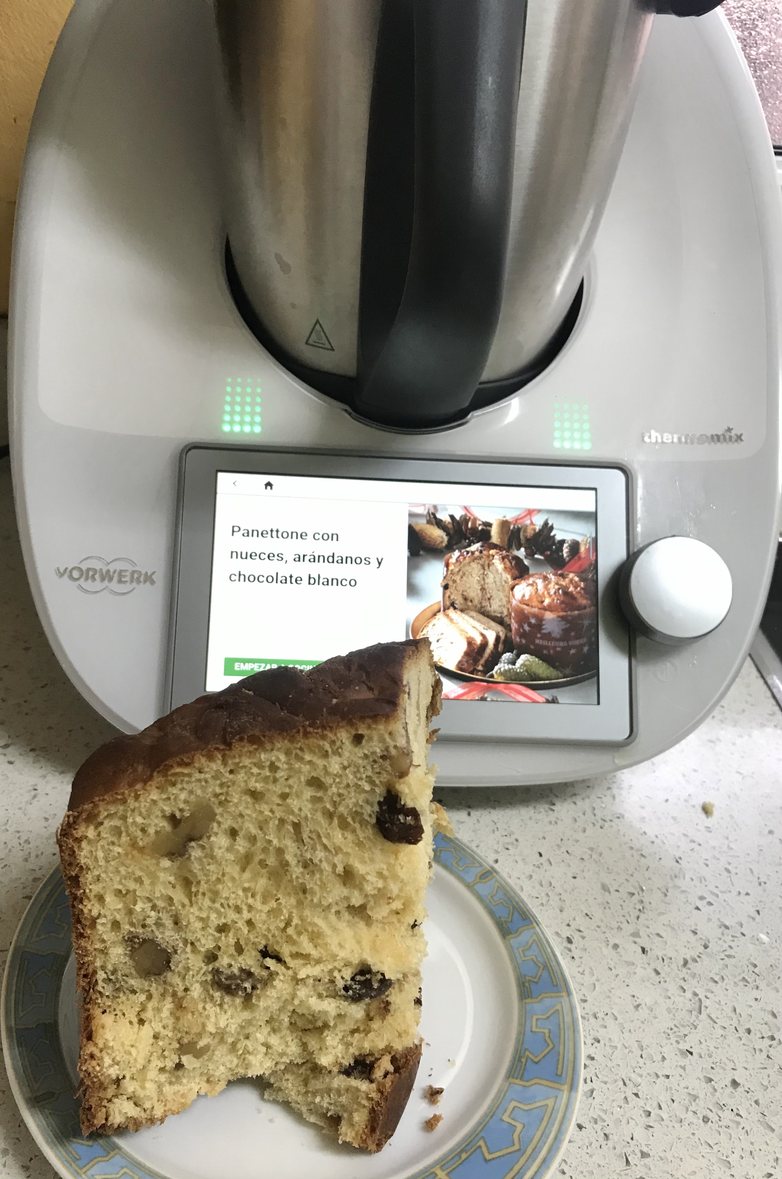 Panettone con nueces, arándanos y chocolate blanco