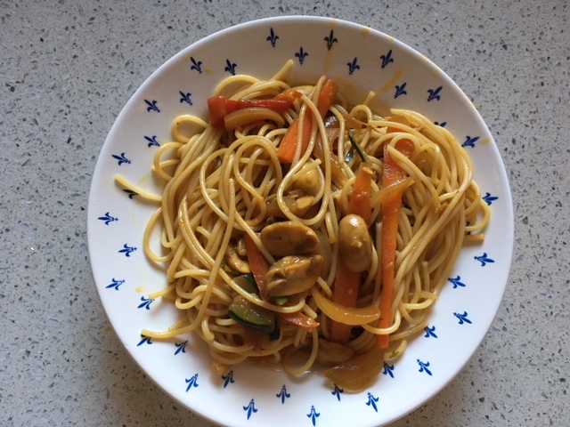 Espaguetis asiático vegetales
