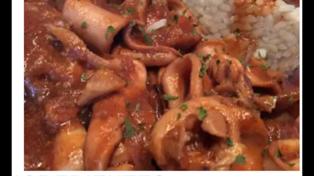 Vierta la salsa sobre los calamares y sirva inmediatamente acompañados del arroz.