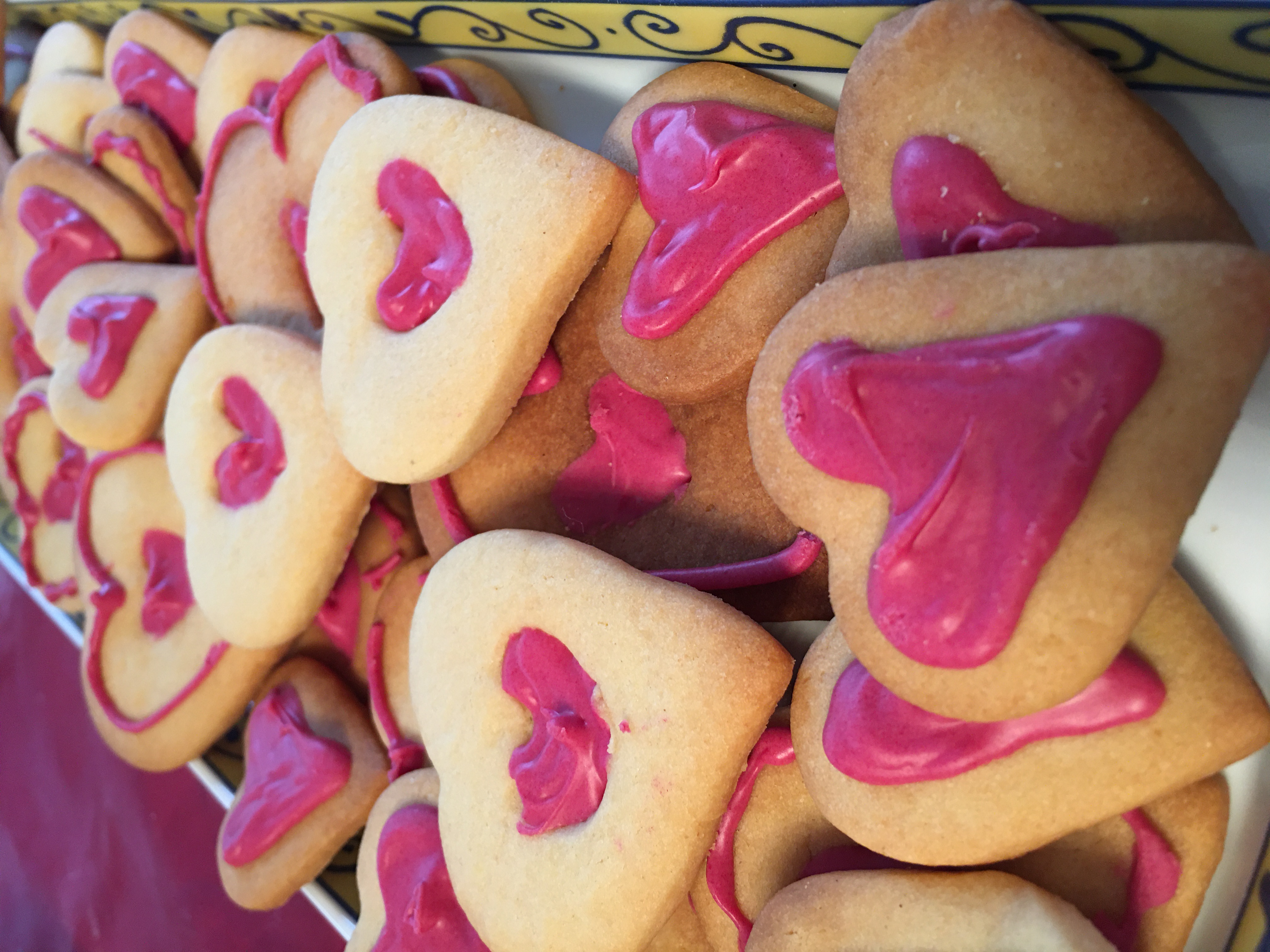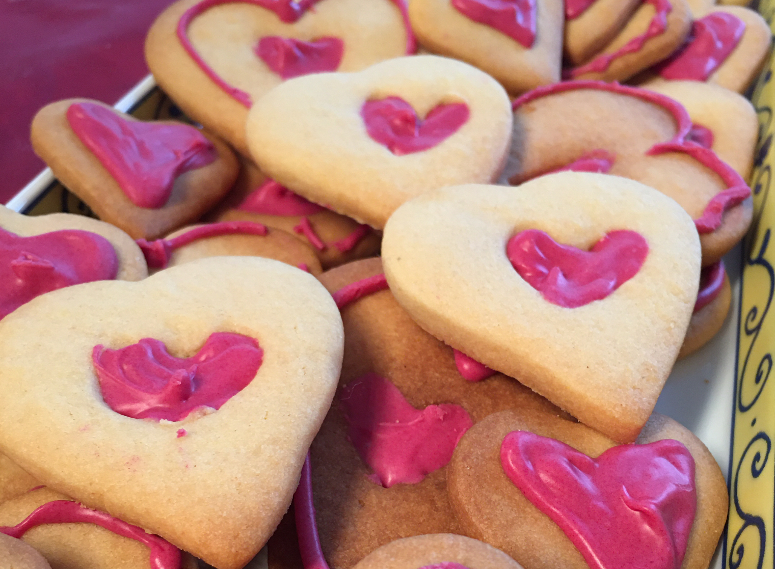 Deliciosas GALLETAS DE MANTEQUILLA CON CORAZÓN ROSA DE CHOCOLATE.